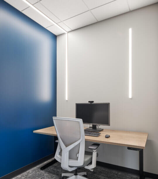 Following an extensive programming workshop focused on long term goals, BDH designed a fun and captivating space that enticed the employees to return to the office while also creating a product showroom. The interactive break room, kegerator, golf simulator, and collaboration areas all contribute to increased employee engagement levels and elevate the day-to-day experience for staff. More than 60 different lighting solutions are incorporated throughout the space to emphasize the wide array of product lines sold by Davis & Associates and generate a remarkable environment that reflects Davis & Associates’ primary business objective.