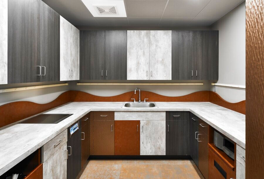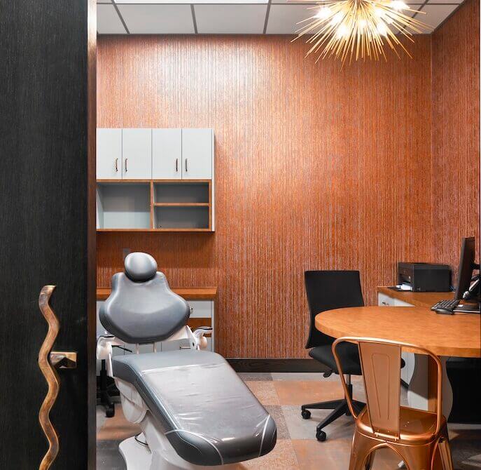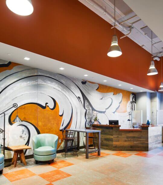 Driven by the client’s Italian heritage and style, Dr. D’s clinic contains bright colors, graffiti wall coverings, ionic columns and urban design features. The modern elements fused with the eclectic design create a fun and welcoming environment for patients.