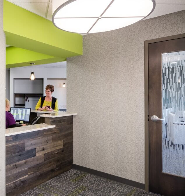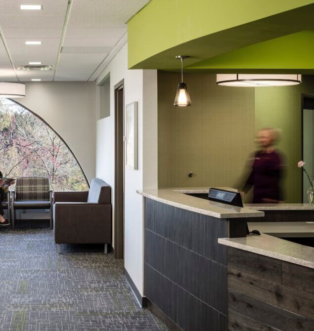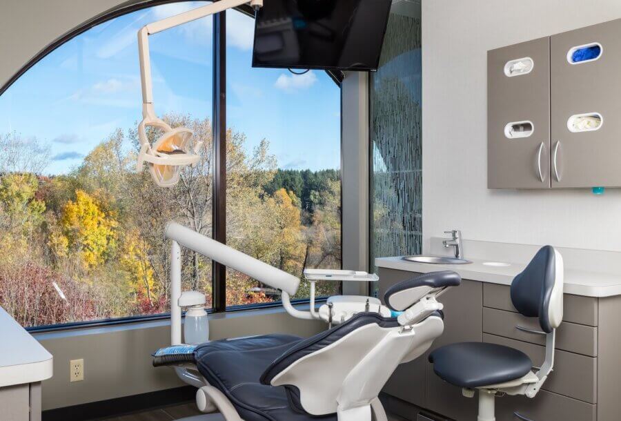 Nestled alongside the Tamarack Nature Preserve, Preserve Dental overlooks the low-land of the preserve. The BDH team used the beauty of the outdoor environment to their advantage when designing the clinic, offering patients views of the wildlife directly from the treatment chair.